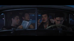 They waved the twenty dollars at the owner, though the fee was upped to twenty-five. Gil stepped forward, but Richie stopped him to tell the guy the truth. They were four kids trying to get home and needed a break. The guy didn't care about the plays or their feelings. He taunted Richie with the keys, so Shy Guy sucker-punched him. They snatched the keys, hopped into the car, and sped through the gate.