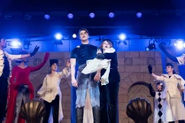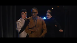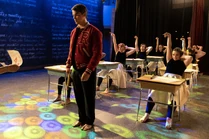 Buddy knocked on the door of the apothecary who didn't answer. Mr. Vaugahn prepared to take the role of apothecary just as Shy Guy raced to the stage. He yanked open the door and wheezed over for a moment before he delivered his line. The T-Birds erupted into cheers and claps for their boy. The cast took their final bow, and Buddy told Hazel he knew she would be great. He left the stage early and walked the halls where Dick found him. Buddy planned to tell Jane about the election and argued with Dick, who tried to stop him. Buddy shoved his father away and walked off.