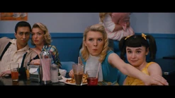 Buddy walked into a busy Frosty Palace where he looked for Jane. Susan enjoyed a burger - to the surprise of her friends. Buddy asked two nerds if they'd seen Jane, but they were unhelpful. Dot saw her before the play but thought she left. Richie arrived with a bruised face and stormed up to Buddy. He asked if he'd seen Jane, but Buddy was just looking for her . Richie wanted him to be sure and then left the restaurant. Dot heard Johnny Vavoom mention Rydell High and shushed everyone as she turned up the volume. He announced that he would DJ for their upcoming dance and credited Buddy. The students were elated and praised Buddy, which slowed him from leaving Frosty Palace.