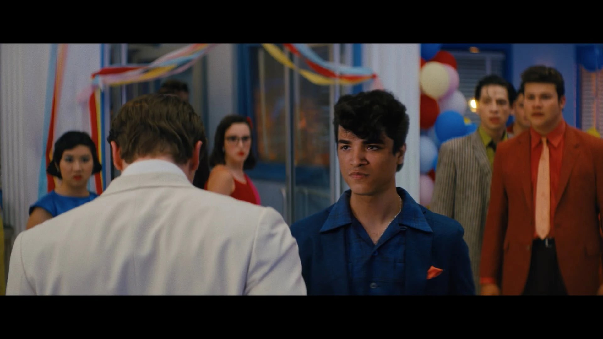 After school, the T-Birds and Pink Ladies went to the Frosty Palace where they talked about the dance, though none of them would typically go. Jane asked Richie if anything would make him go, and he said better tunes. She ran to the radio and offered to throw another dance that even Richie Valdovinos would go to.